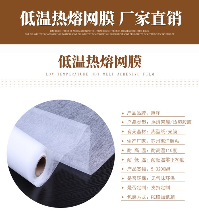 低溫熱熔膠網膜具有復合溫度低的特點,不同材質的低溫熱熔膠網膜所適用的行業也存在差異,歡迎聯系工作人員拿樣試用