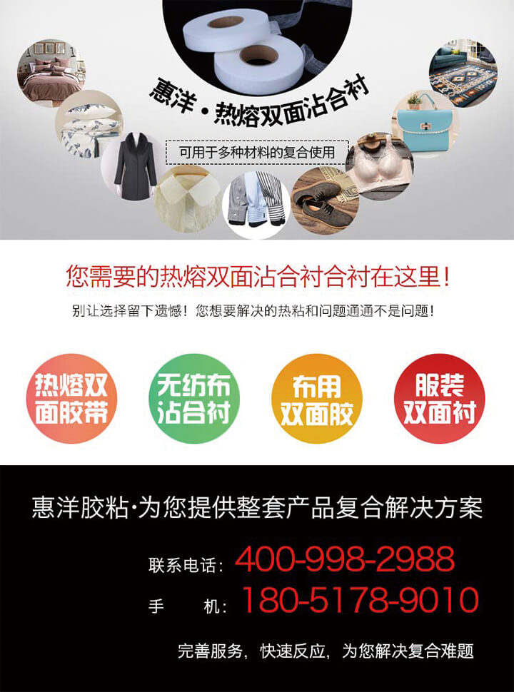 您當(dāng)前的位置:首頁(yè) > 產(chǎn)品中心 > 熱熔雙面膠粘合襯 > 產(chǎn)品詳情頁(yè)
